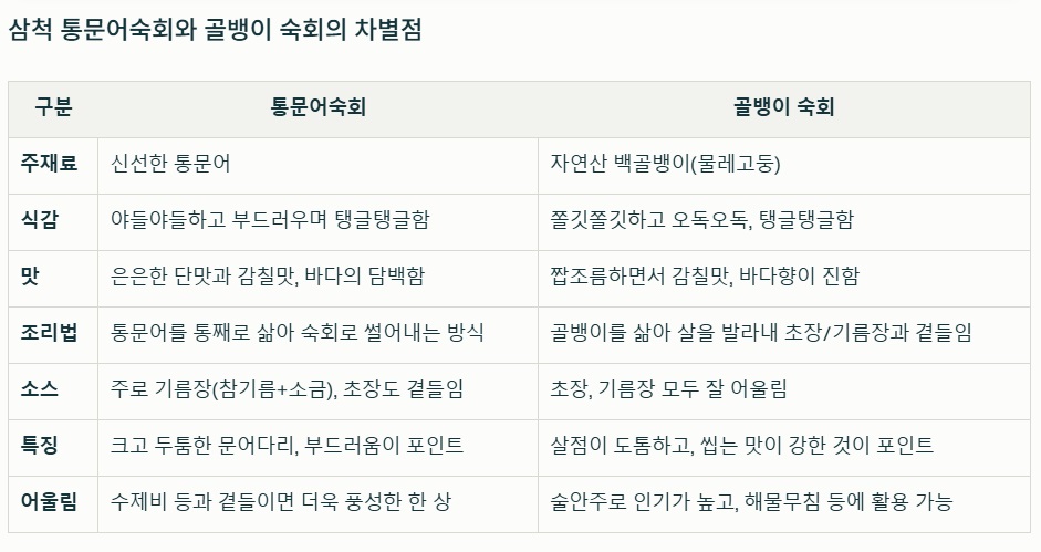 삼척 통문어숙회와 골뱅이 숙회의 차별점은 무엇인지 궁금해요?
